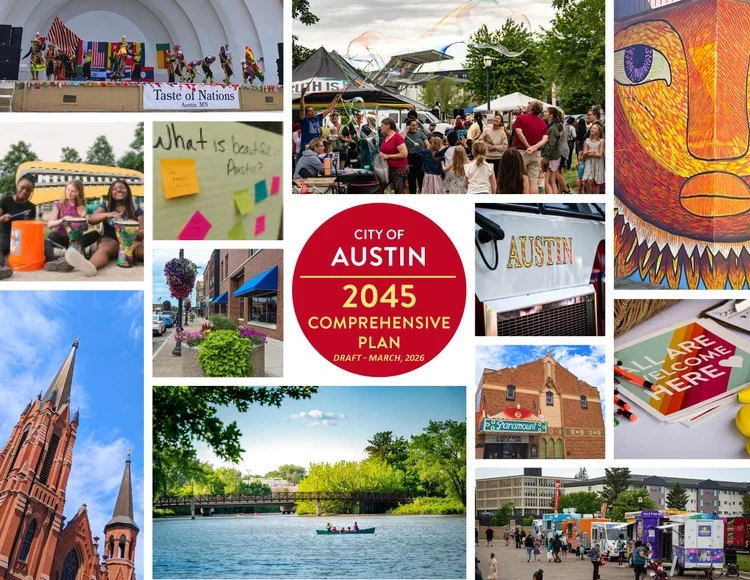 The City of Austin and Mower County have partnered to develop Comprehensive Plans jointly. This partnership will ensure a unified vision for the City and County into the year 2045.